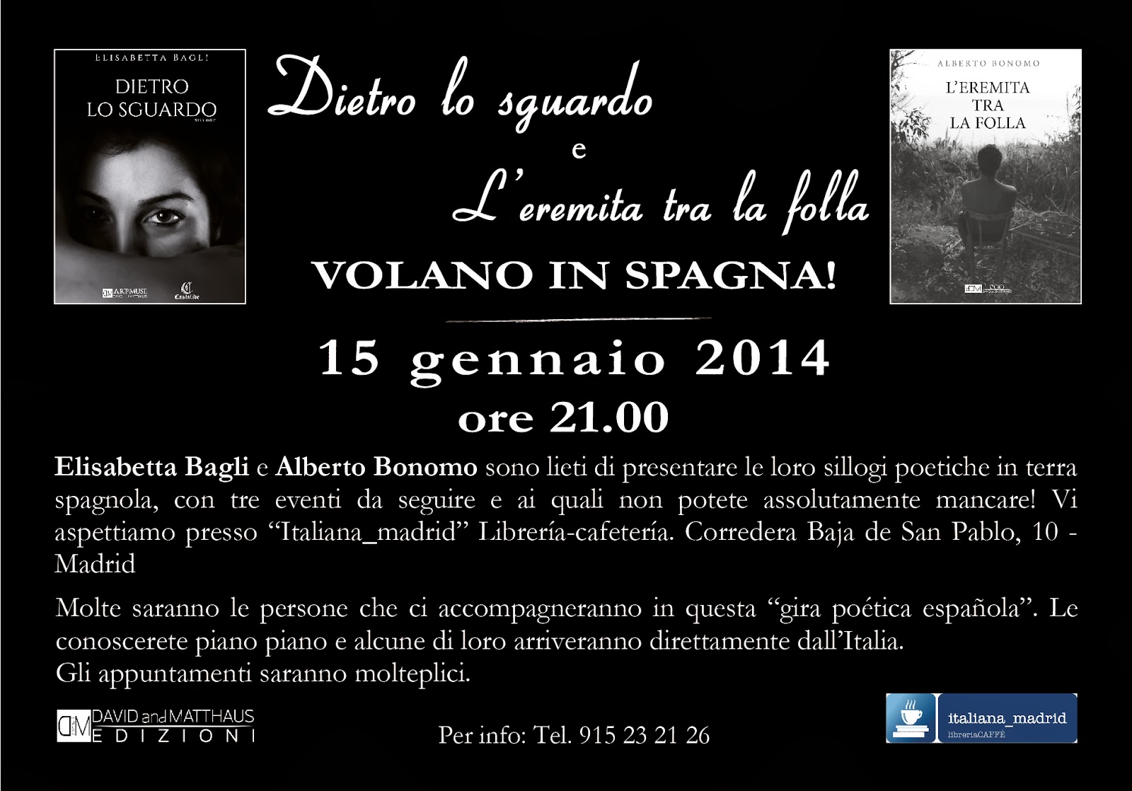 15 gennaio 2014 – Presentazione di “Dietro lo sguardo” di Elisabetta Bagli e “L’eremita tra la folla” di Alberto Bonomo a italiana_madrid