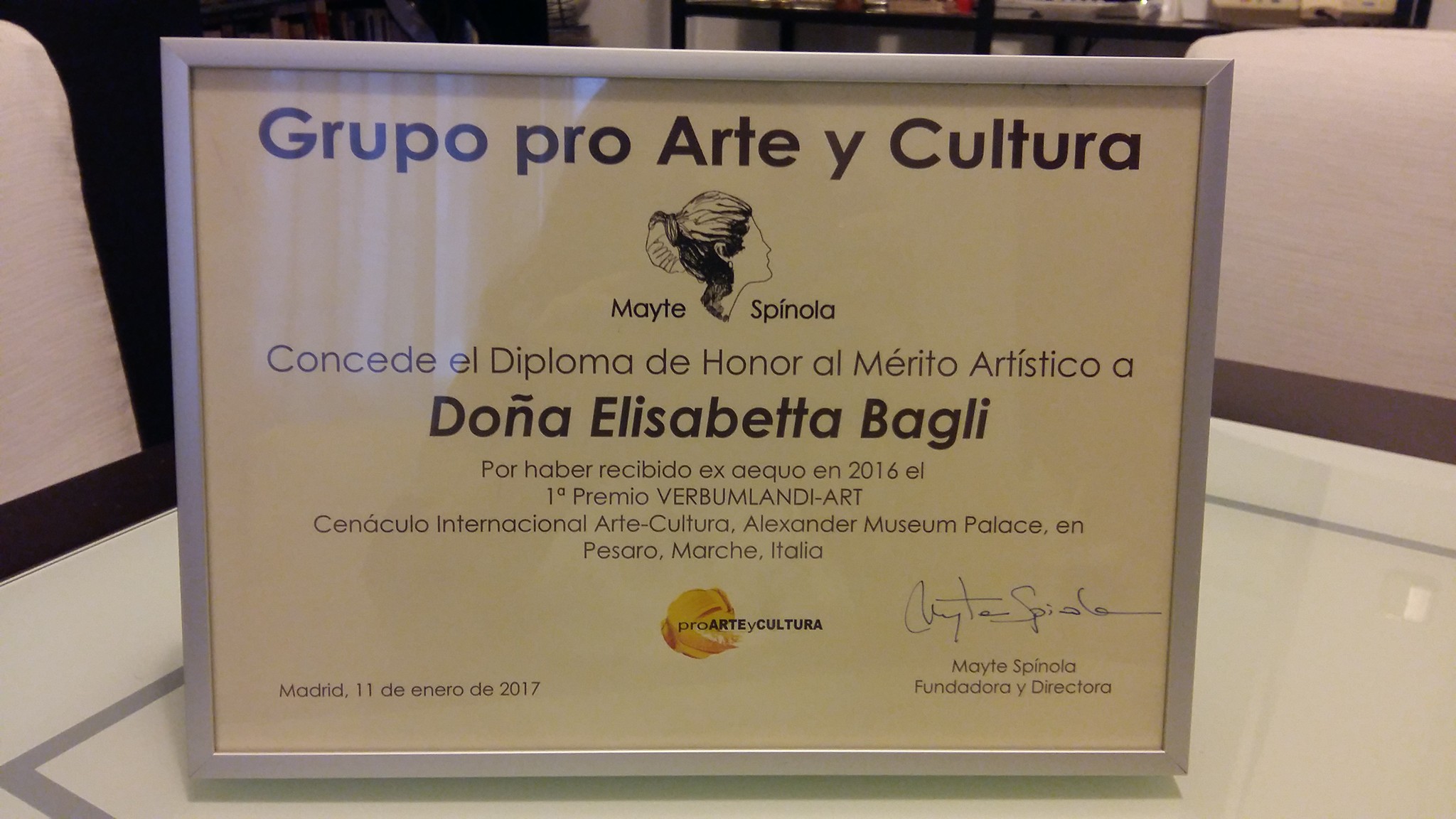 - Diploma de Honor al Mérito Artístico de Elisabetta Bagli