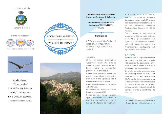Il 1° Concorso artistico “Valle del Noce” che, nella sua prima edizione, si esplicherà in due sezioni: