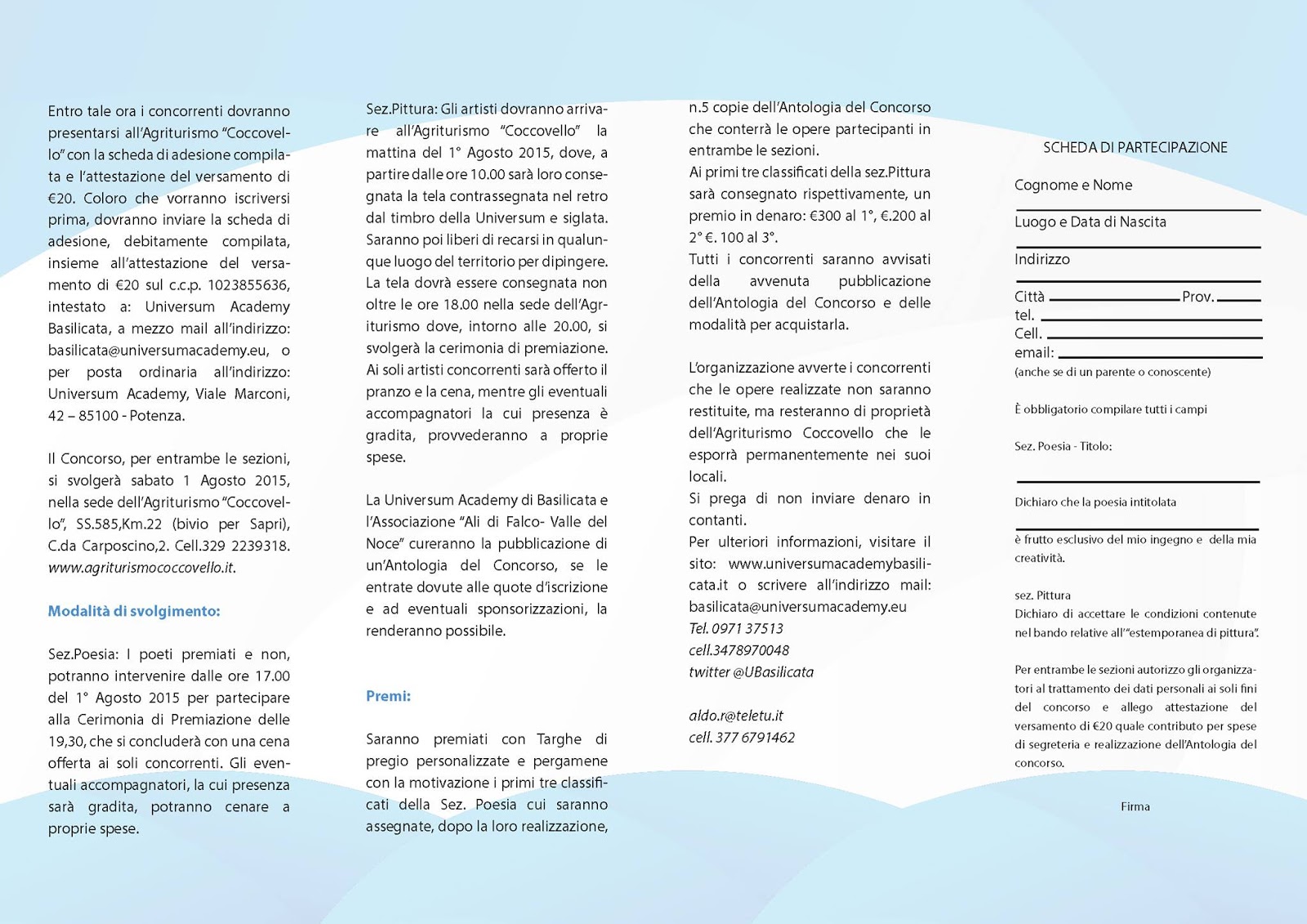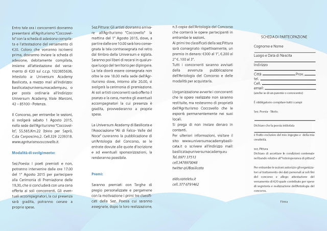 Il Concorso, per entrambe le sezioni, si svolgerà sabato 1 Agosto 2015, nella sede dell’Agriturismo “Coccovello”, SS.585,Km.22 (bivio per Sapri), C.da Carposcino,2. Cell.329 2239318. www.agriturismococcovello.it.